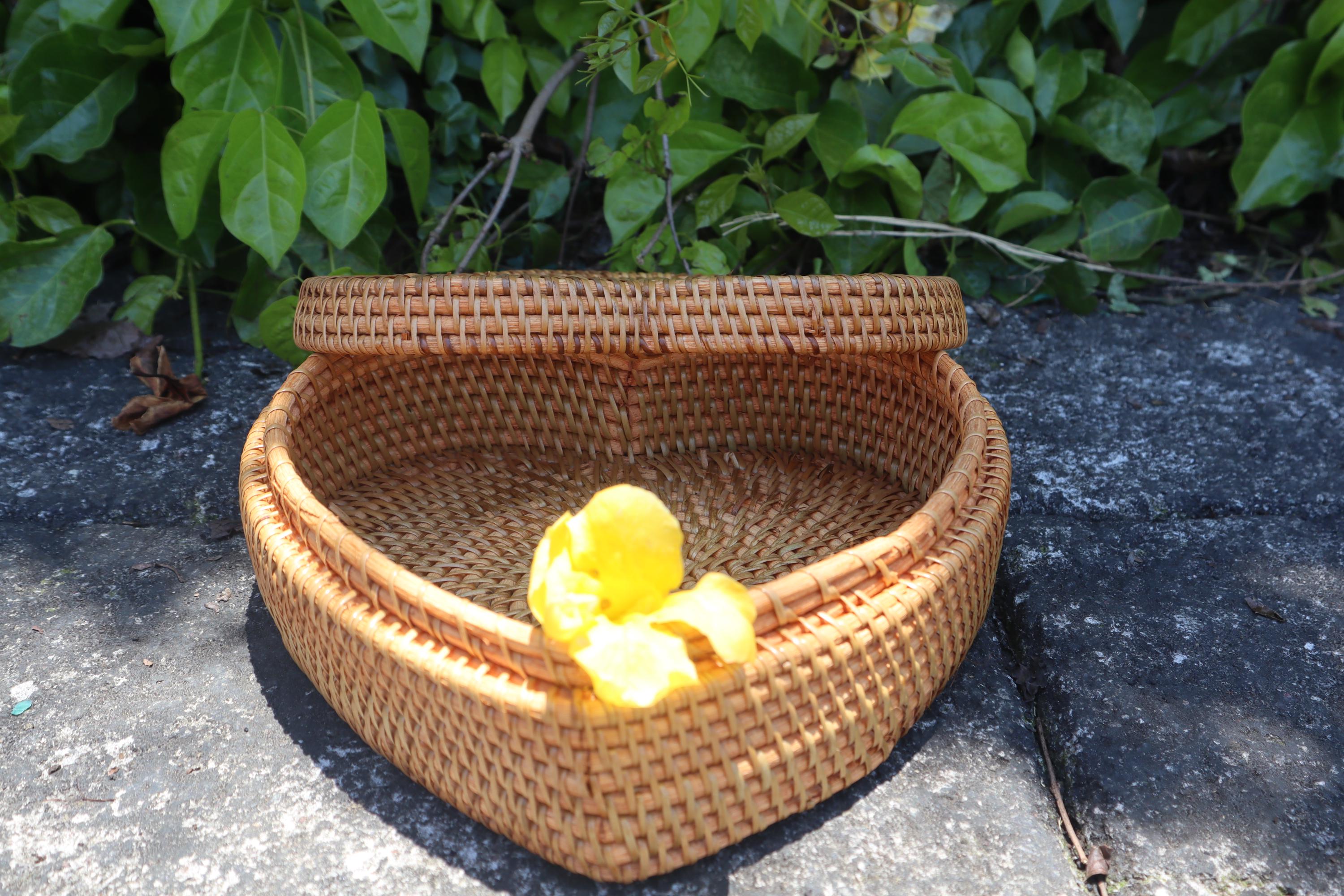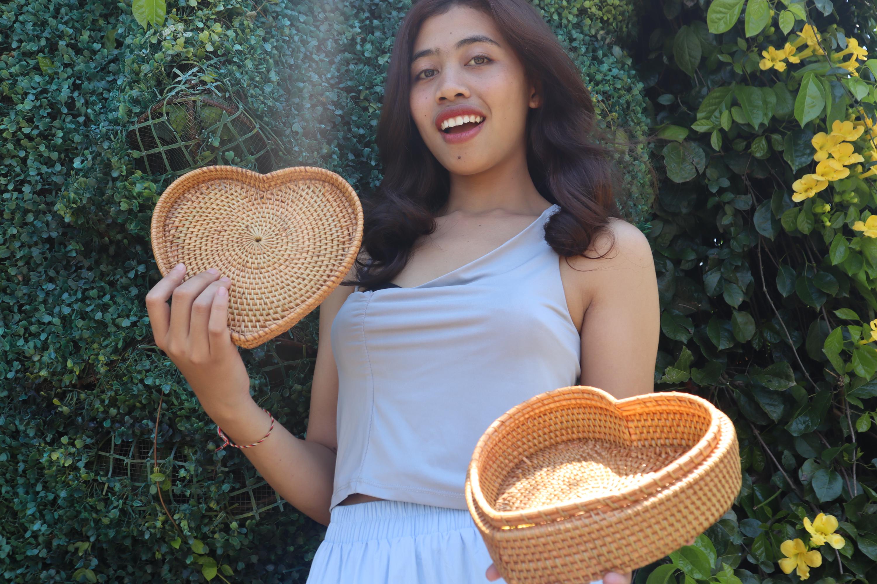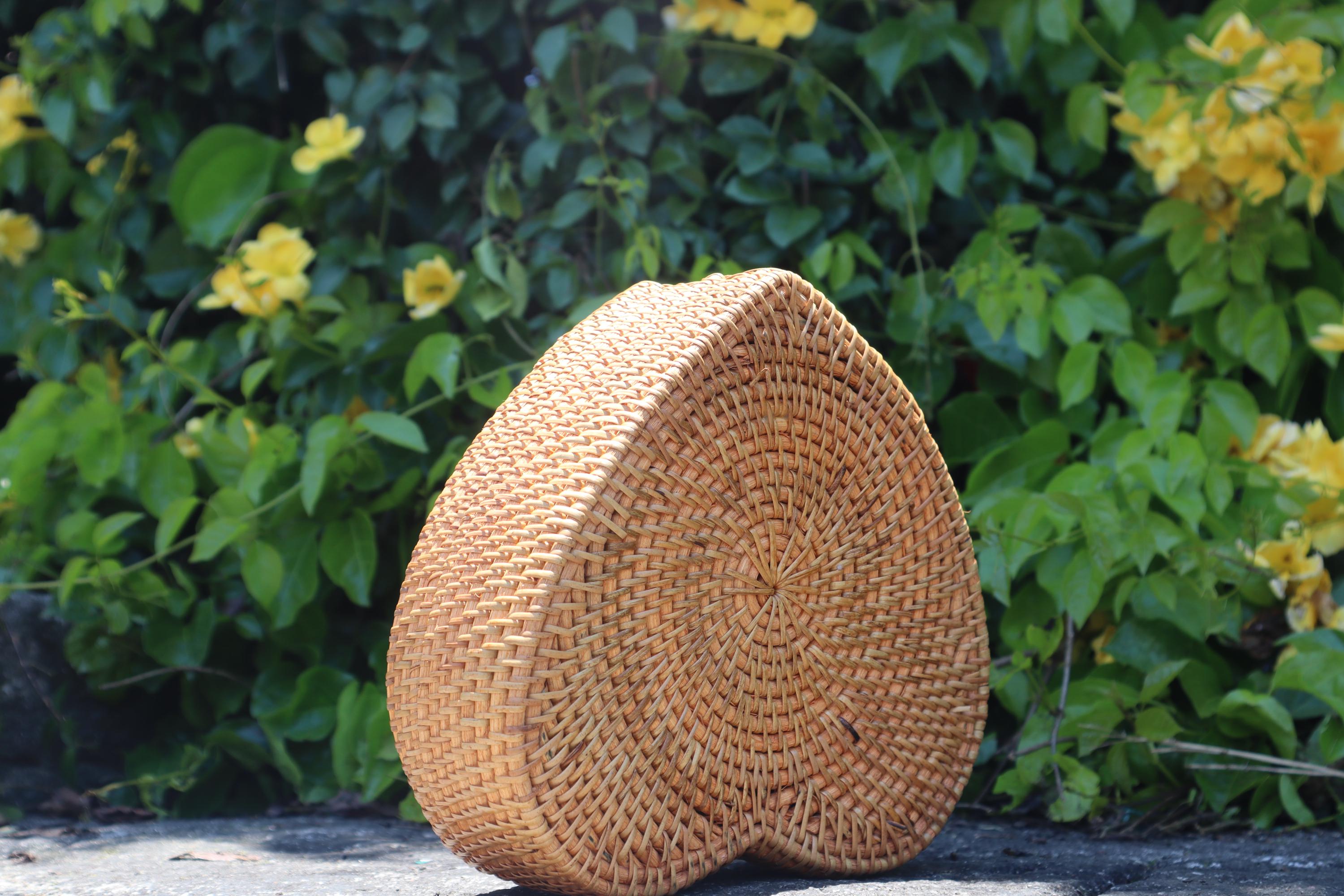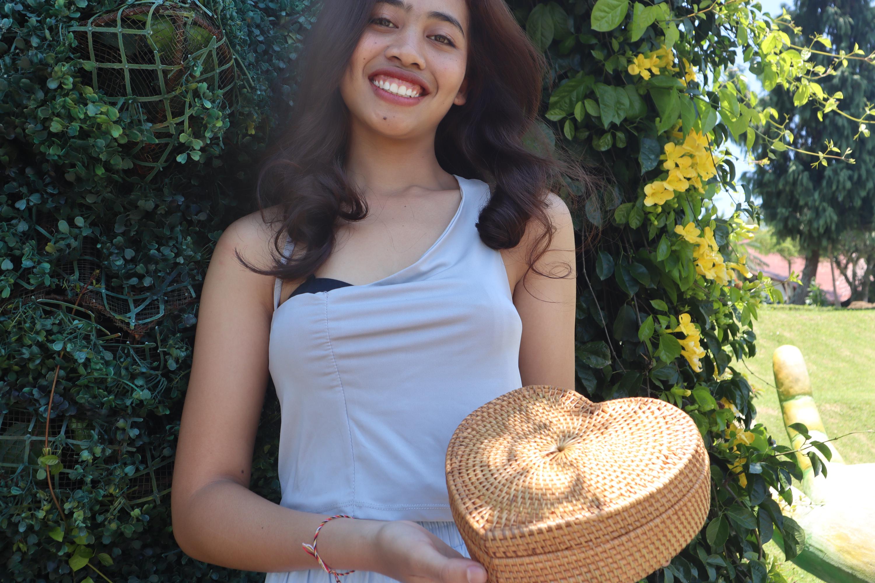 Made from natural rattan by skilled artisans in Bali, Indonesia, each bag is carefully handcrafted using traditional weaving techniques that have been passed down for generations. The rattan is sun-dried and then smoked over coconut shells to achieve its beautiful golden brown color and long-lasting durability.