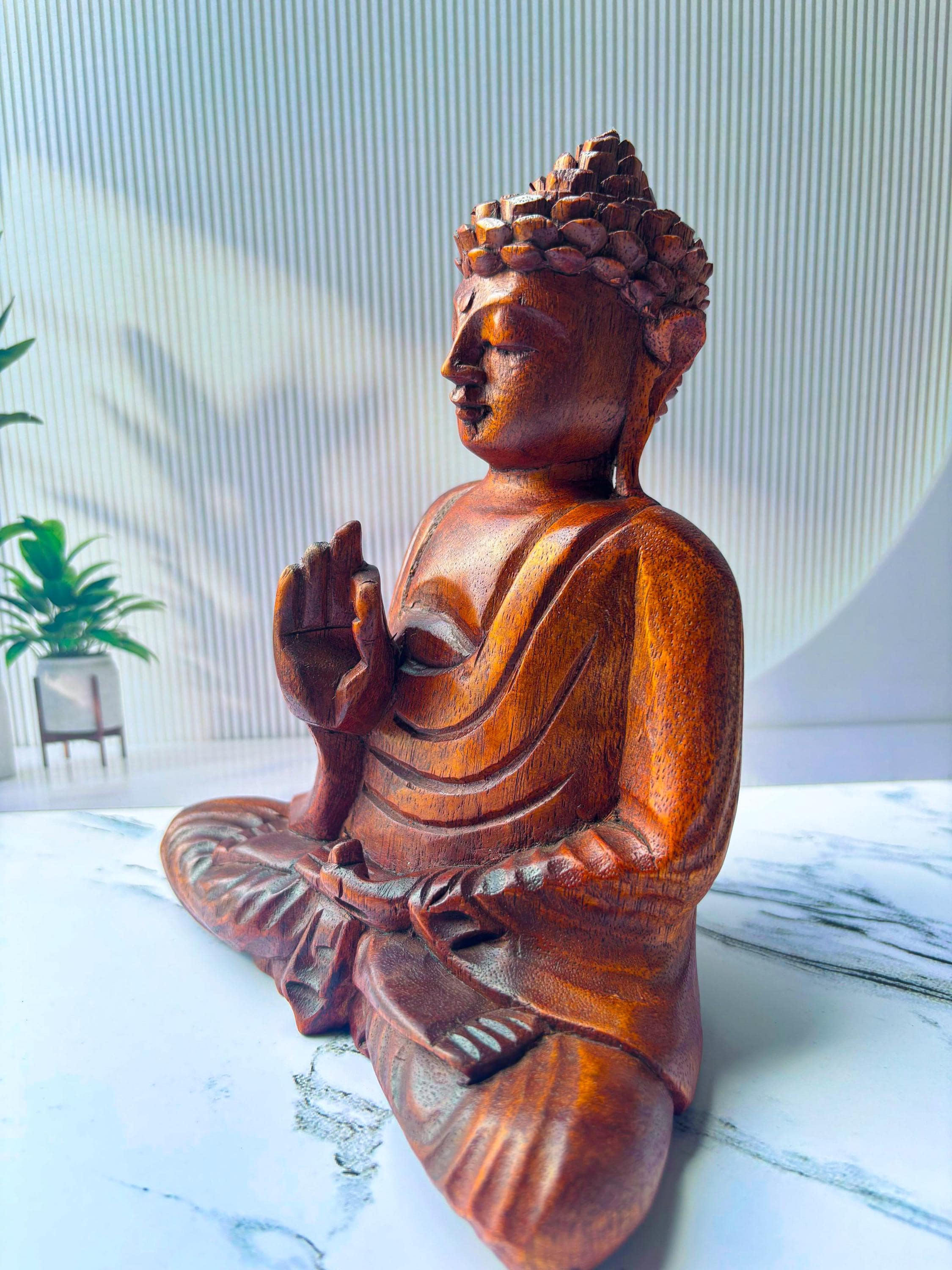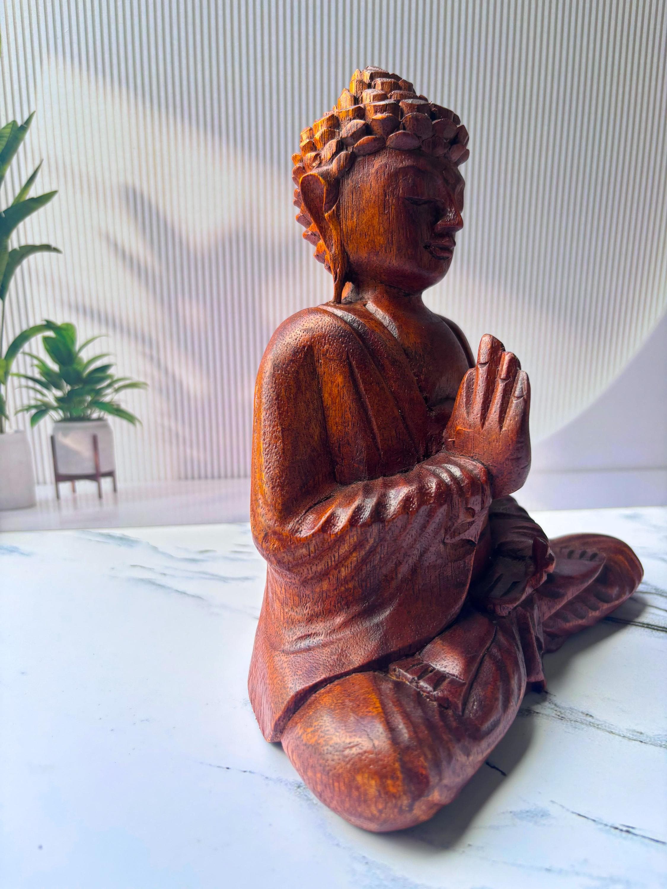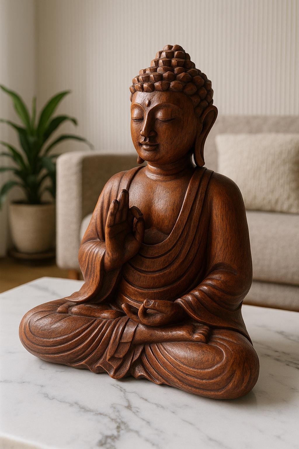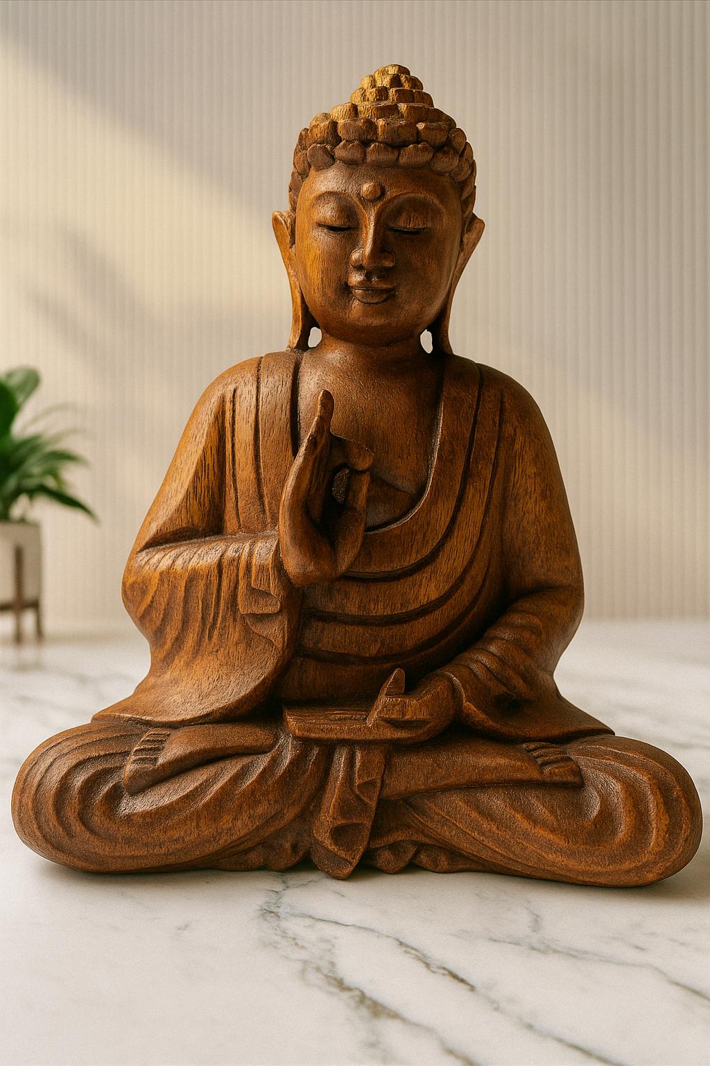 Made from premium solid wood, this beautiful piece captures the Buddha in a meditative pose, symbolizing calmness, balance, and mindfulness.
